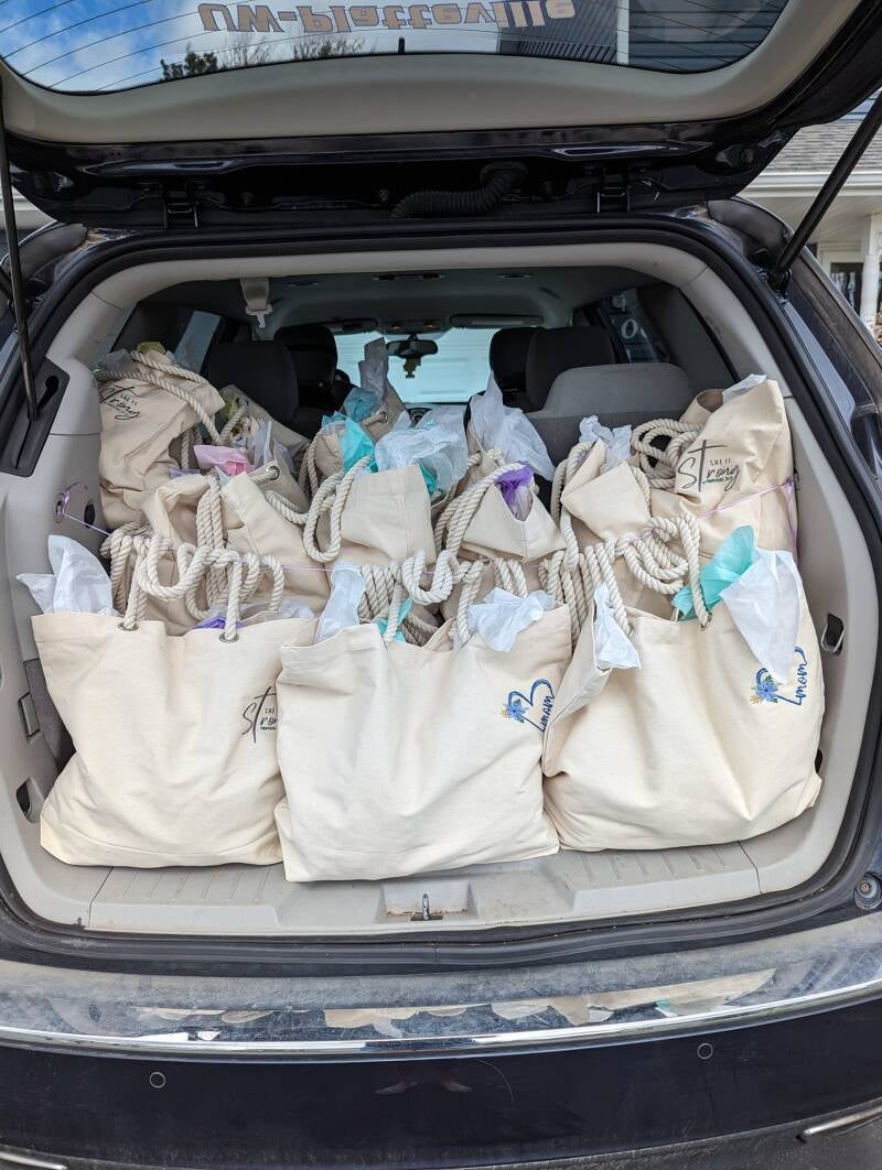 My latest Donation to the local pregnancy resource center for area mom's to pamper themselves for Mother's Day. I stitched 3 different designs and packed the bags full of goodies. <3